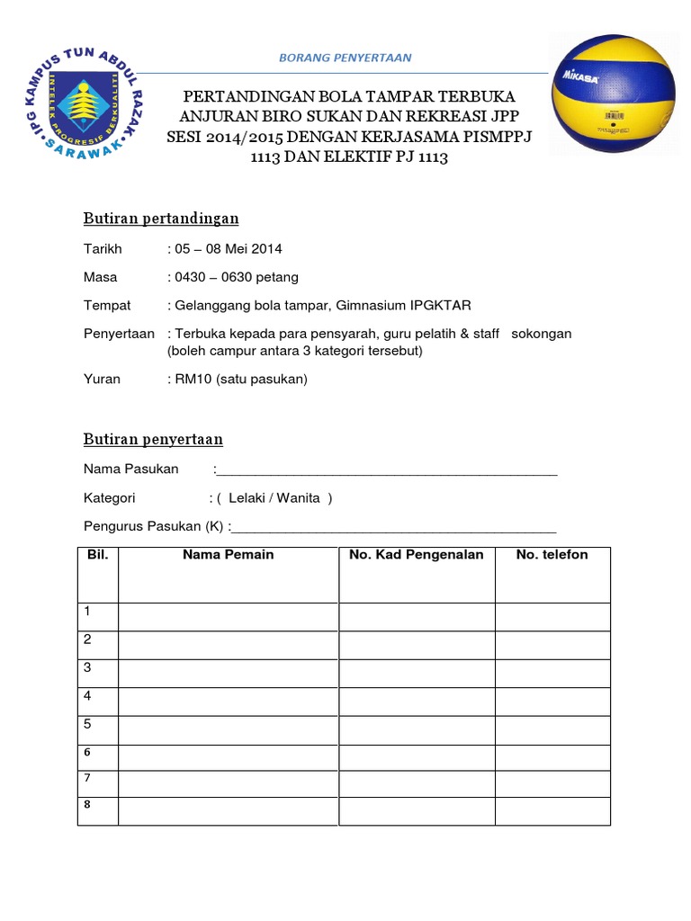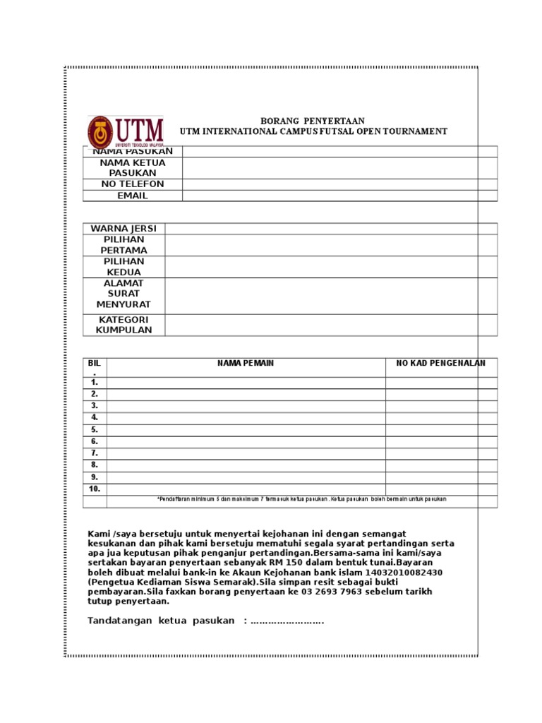836 Menyediakan Borang Pesanan Contoh Lampiran A 837 Apa yang patut dilakukan apabila menerima duitwang. 4 published by hamuza_sensei on 2020-04-03. Pendaftaran Pemain hendaklah menggunakan borang khas iaitu Borang Daftar Pasukan Bola.