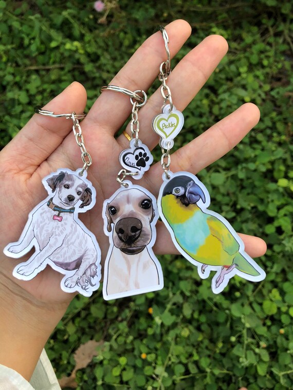 Personalized Pet Portrait Keychain Custom Dog Keychain Pet Etsy India